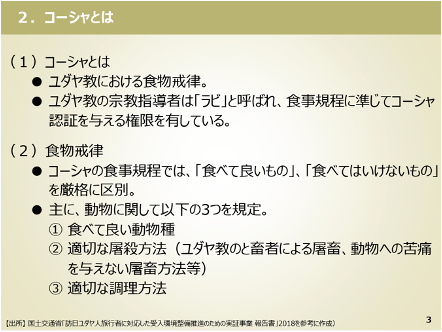 ※コーシャについては、国土交通省(!)が作った資料をもとに農林水産省がまとめたものがこちら