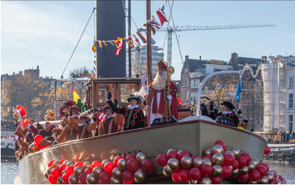 サンタではなくシンタです。オランダ・ベルギーではクリスマスの前にシンタクラースがやってきます。彼はスペインから蒸気船に乗って、ピートという名前のお供を連れてきて、11月半ばから約3週間滞在し子供達にプレゼントを配るのだそうです。
